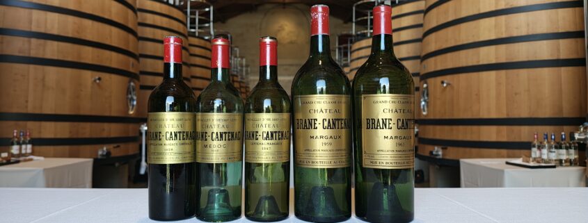 Zum hundertjährigen Jubiläum lud Henri Lurton eine ausgewählte Gruppe von Fachjournalisten ein, die Entwicklung von Château Brane-Cantenac in einer aussergewöhnlichen Vertikalverkostung nachzuvollziehen. Präsentiert wurden über dreissig Jahrgänge aus seiner eigenen Ära (1992–2023), ergänzt durch symbolträchtige Referenzen aus der Familiengeschichte: 1959 und 1961 für die Generation von Henri Lurton, 1945 und 1947 für jene seiner Eltern sowie 1928 für die seiner Grosseltern. Die offizielle Verkostung fand am Vormittag in den historischen Kelleranlagen des Guts statt; die älteren Jahrgänge vor 1992 wurden beim anschliessenden Mittagessen geöffnet.